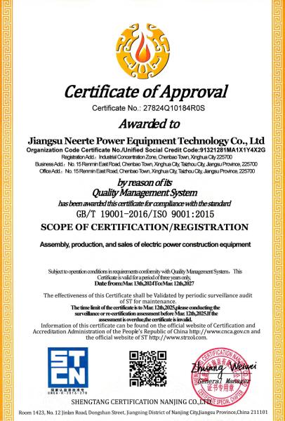 SCOPE OF CERTIFICATION/REGISTRATIONthe environmental management activities involved by Assembly,production, and sales of electric power construction equipment and places